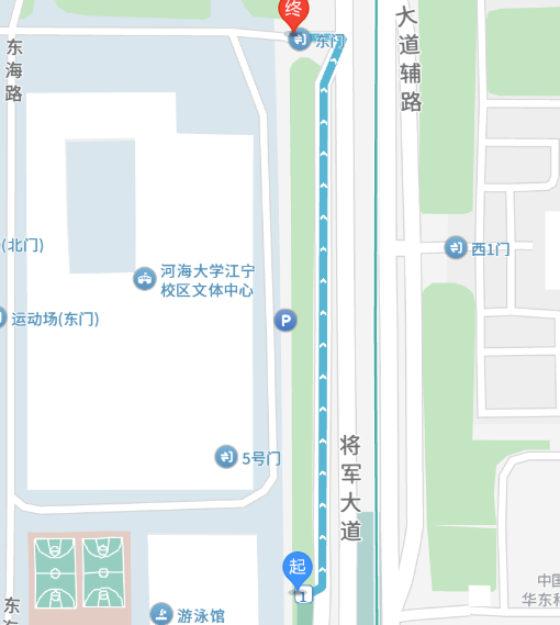 到达站点河海大学•佛城西路并且从1 号口出站,此时向北步行约 100m,左手边即为河海大学江宁校区东门